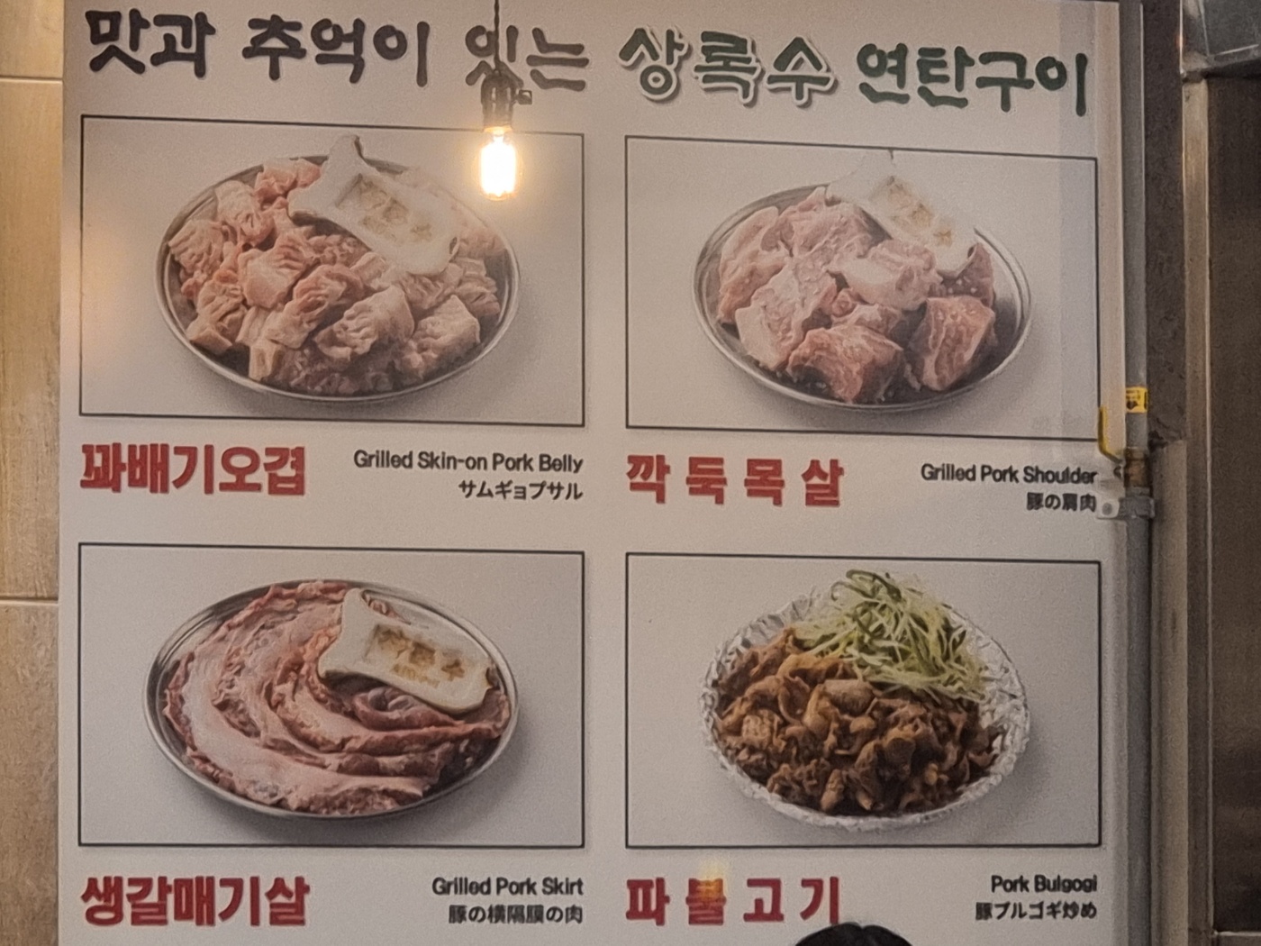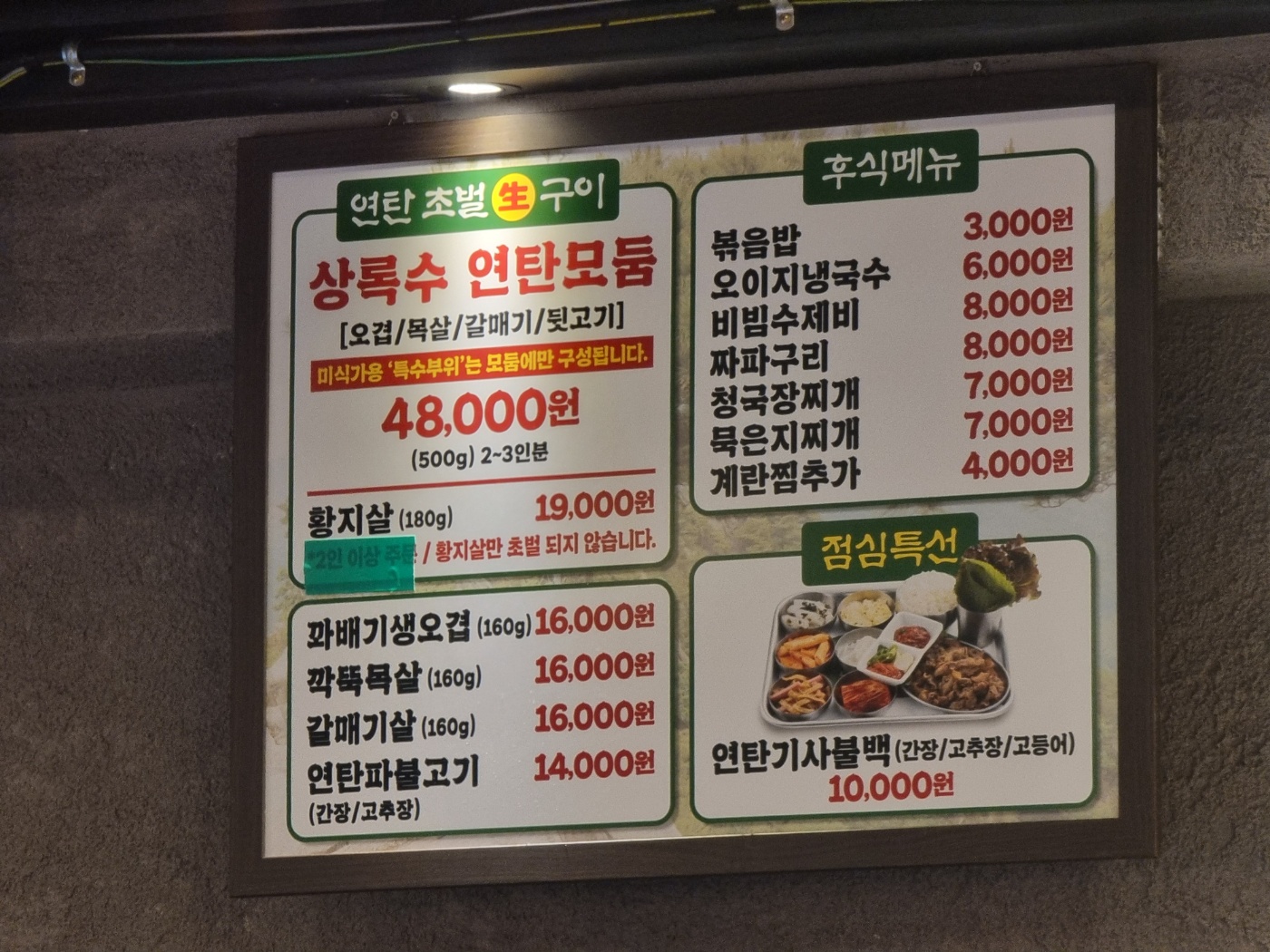 - 대표메뉴: 황지살, 상록수연탄모둠, 연탄파불고기, 김치찌개