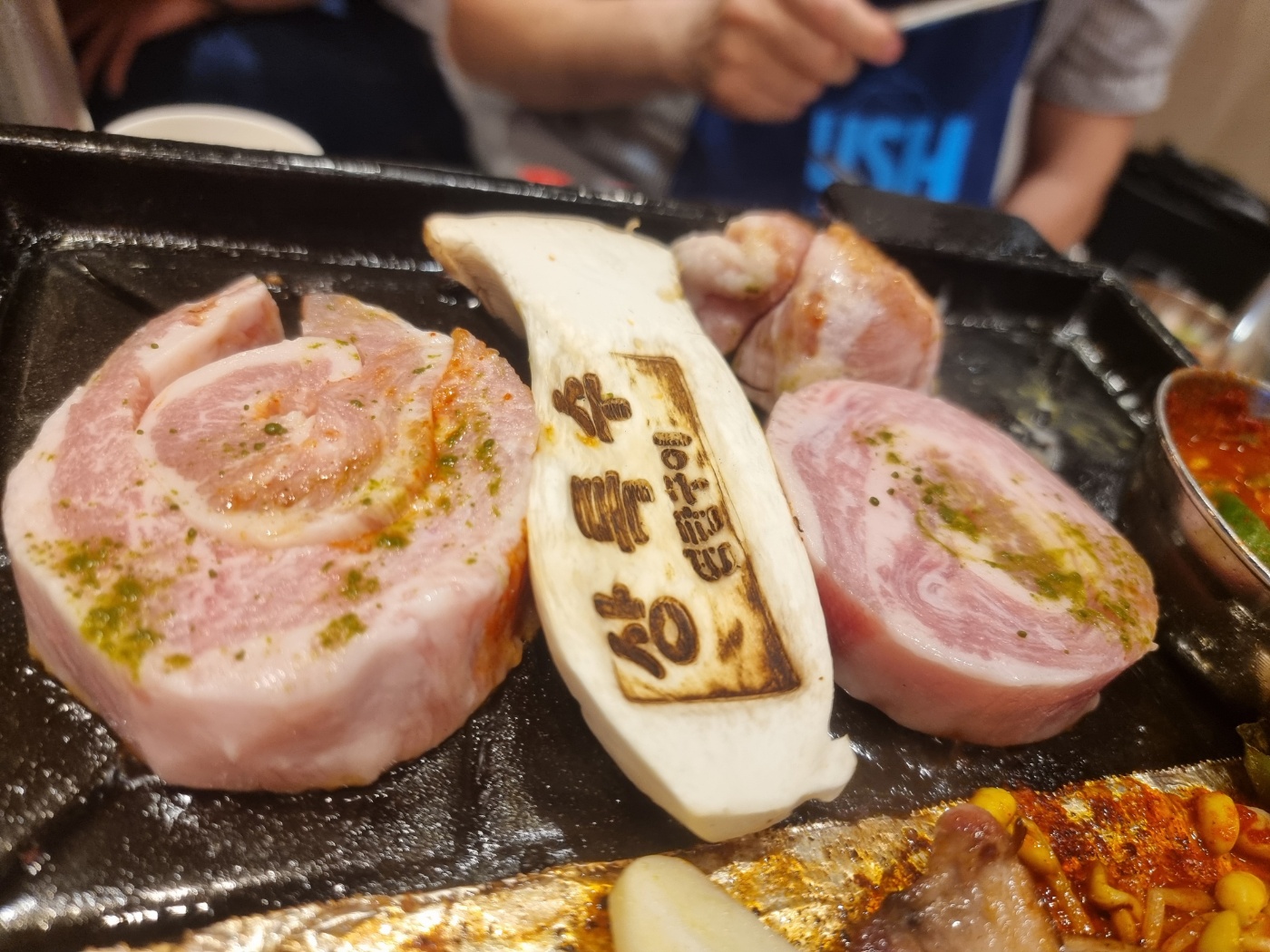 상록수연탄구이 충무로직영점 시그니처 메뉴는 연탄불 초벌을 거치지 않는 황지살이다. 항지살은 항정살에서 불필요한 지방을 제거하고, 알짜 부분만을 동그랗게 빚은 걸로 딱 보기엔 햄 같다. 모양은 이색적이지만 불판 위에서 지글지글 익어가는 황지살을 보는 순간, 비로소 항정살 모습이 드러난다. 지방이 제거되어 담백하면서도, 항정살 특유 고소함이있다.