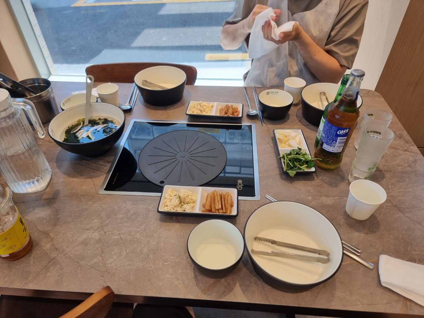 쌍문동맛집 감동식당 주문과 동시에 상차림이 깔렸다. 미역냉국 (시원하고 개운함), 백김치, 마카로니샐러드,무장아찌