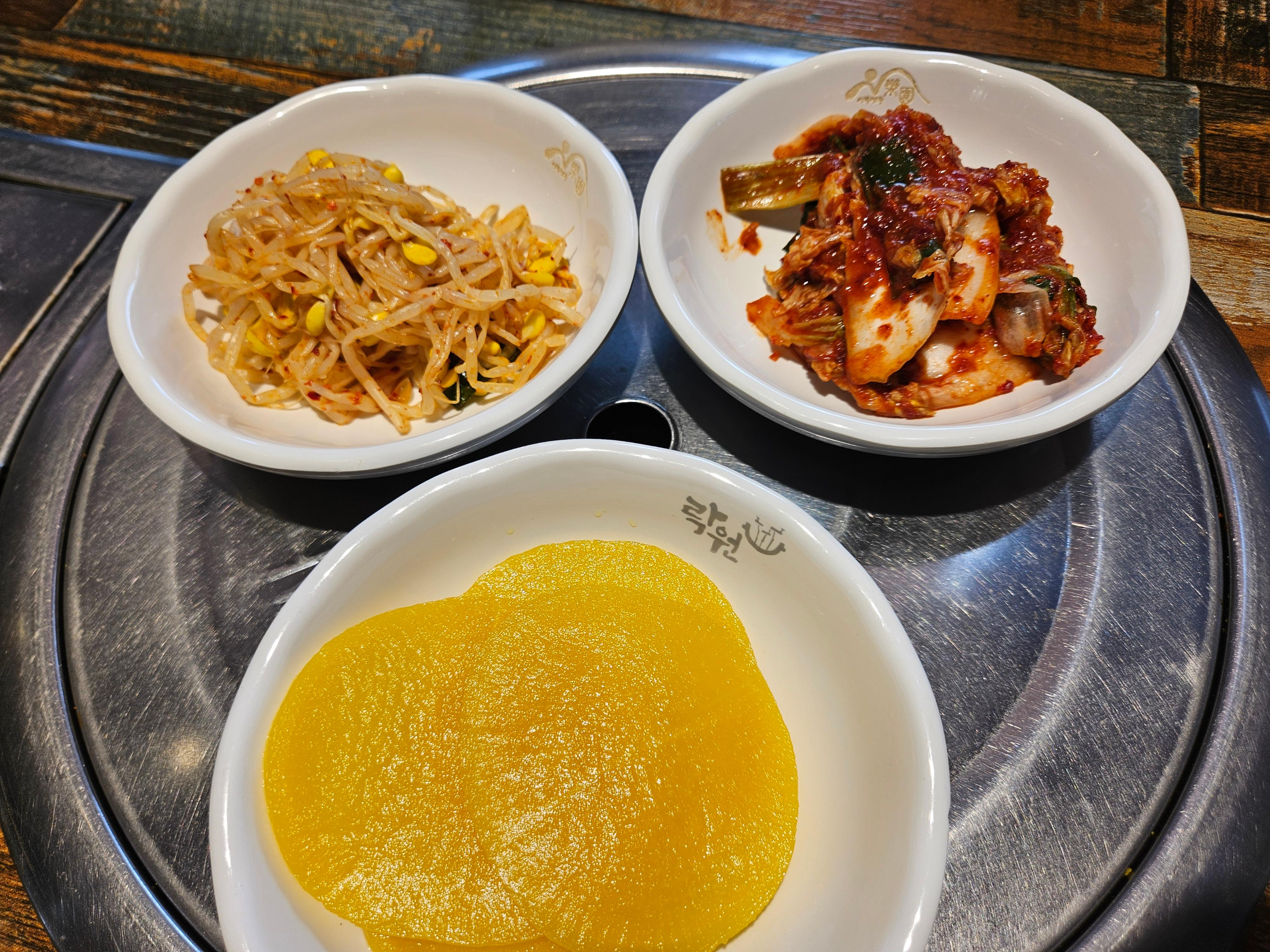 김포 락원이북만두 기본 반찬은 단무지와 김치, 콩나물무침 제공되며, 생수도 2인에 1병씩 제공된다. 물 추가 시 물병을 더 받을 수 있다. 김치는 아삭하면서도 적당히 익어 감칠맛이 좋았고, 콩나물무침도 깔끔하고 맛있게 잘 나왔다. 이곳은 매일 만드는 겉절이를 제공한다고 하니, 반찬 하나하나에도 정성이 느껴진다.