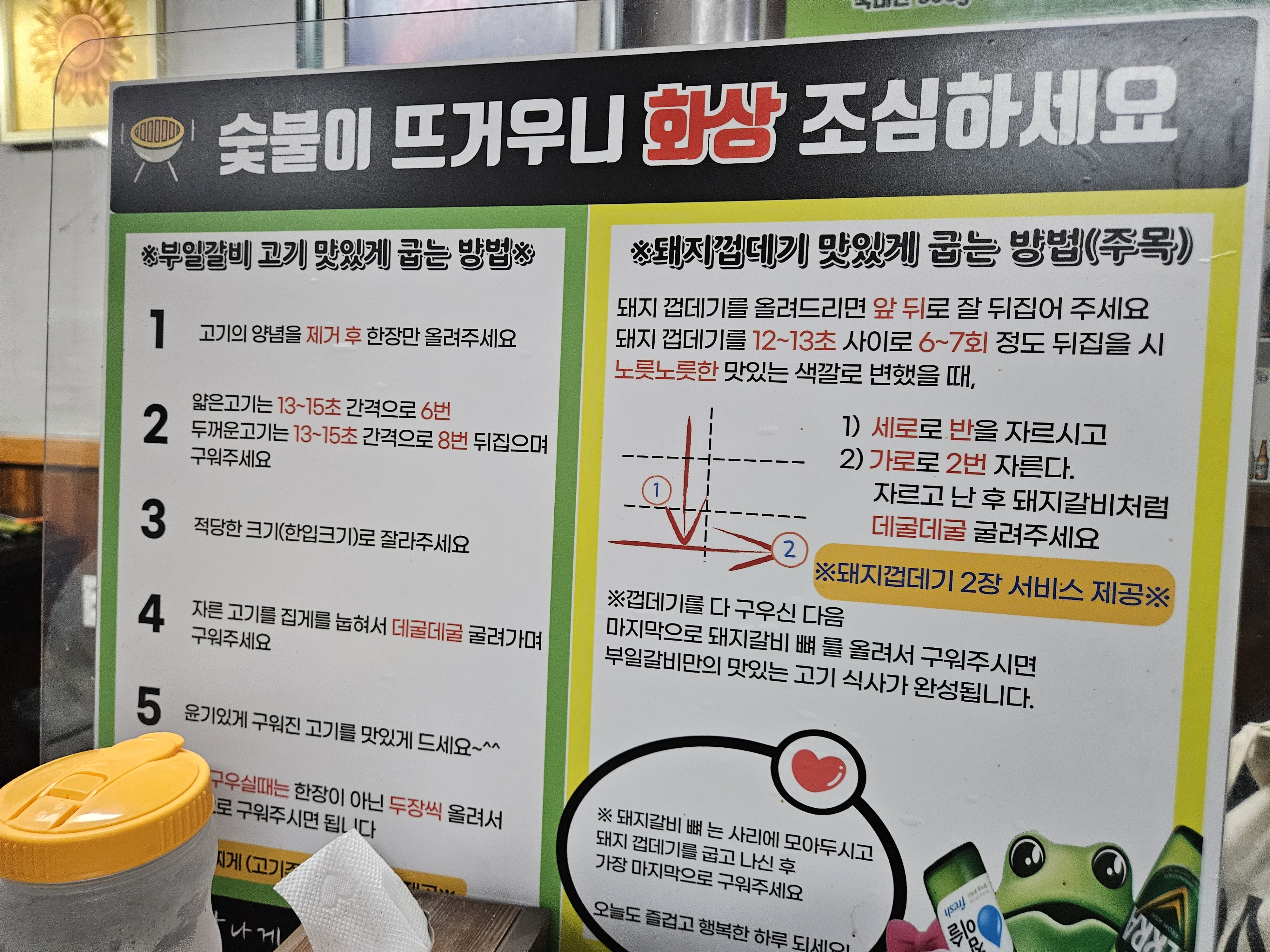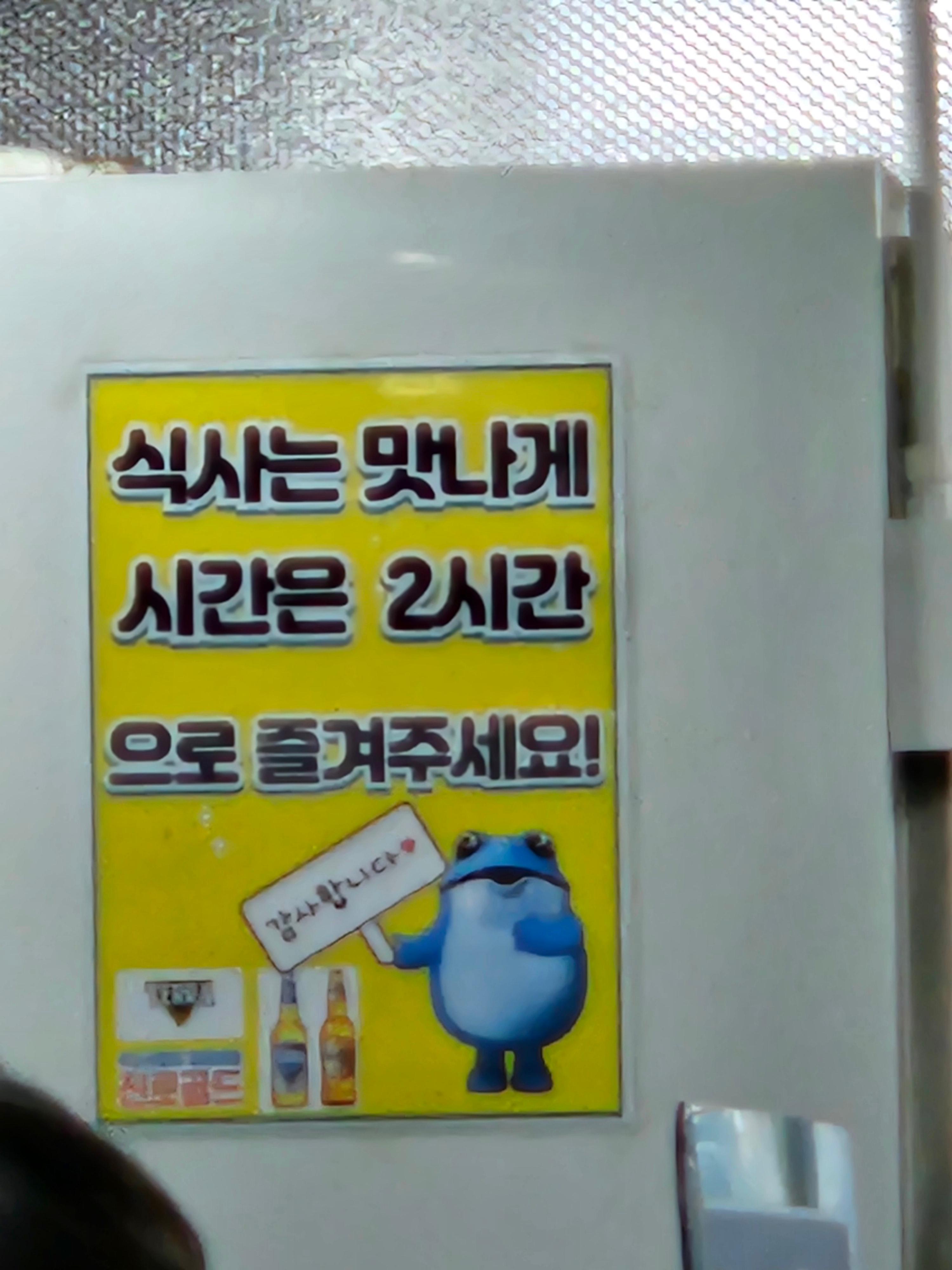 식사 시간이 2시간으로 제한되어 있다. 웨이팅 하는 사람들이 많으니 충분히 이해되는 부분이다. 실제로 먹어보니 2시간이면 넉넉하다. 천천히 구워 먹고, 대화를 나누고, 된장찌개까지 즐기기에 충분한 시간이다.
