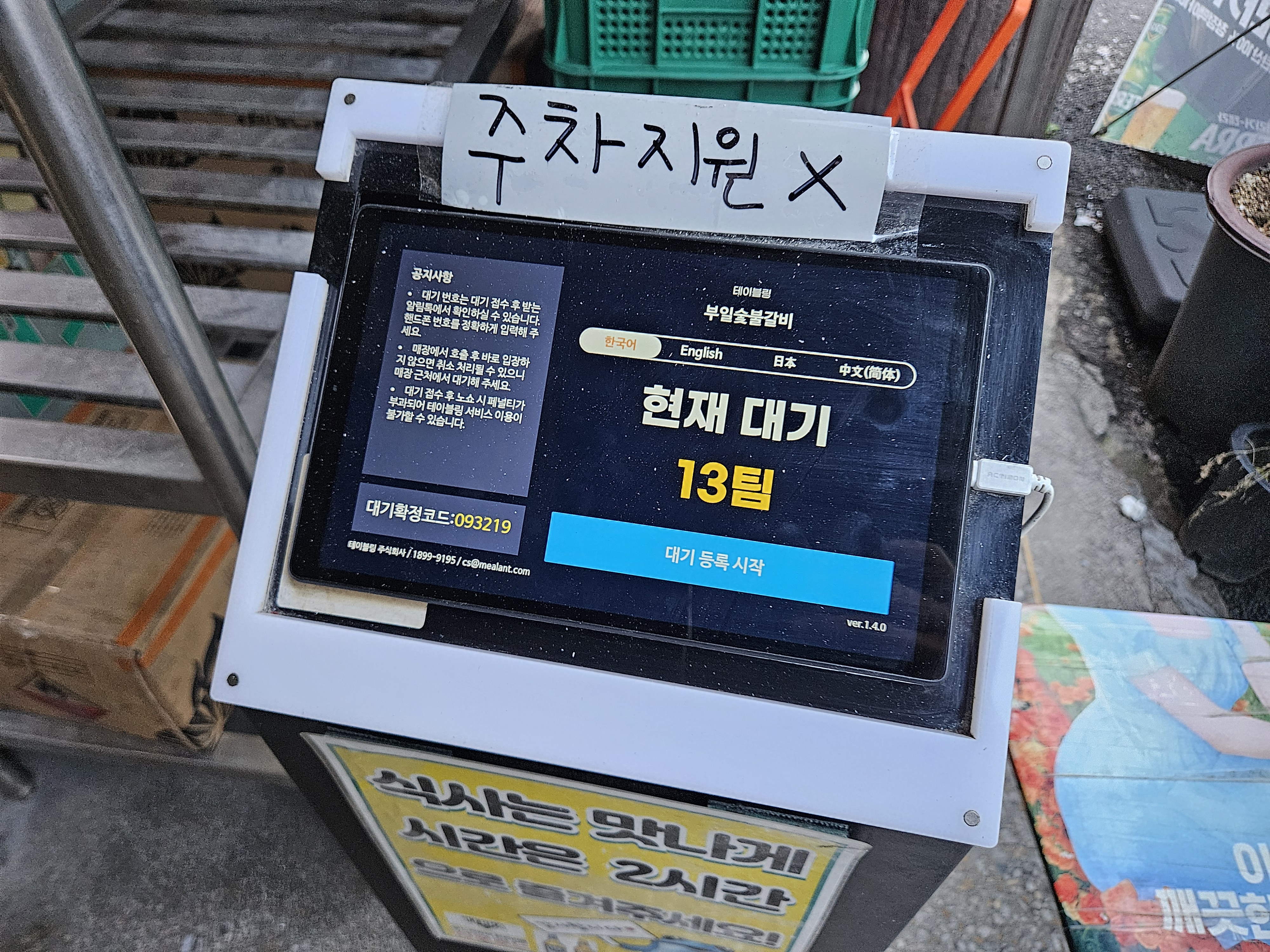 영등포부일갈비 도착시간 5시 15분. 웨이팅 패드에 현장 등록했다. 이때도 대기는 13팀. 목요일 오픈 시간이 4시 30분인데, 테이블링 확인해보니 12팀이 웨이팅하고 있다.